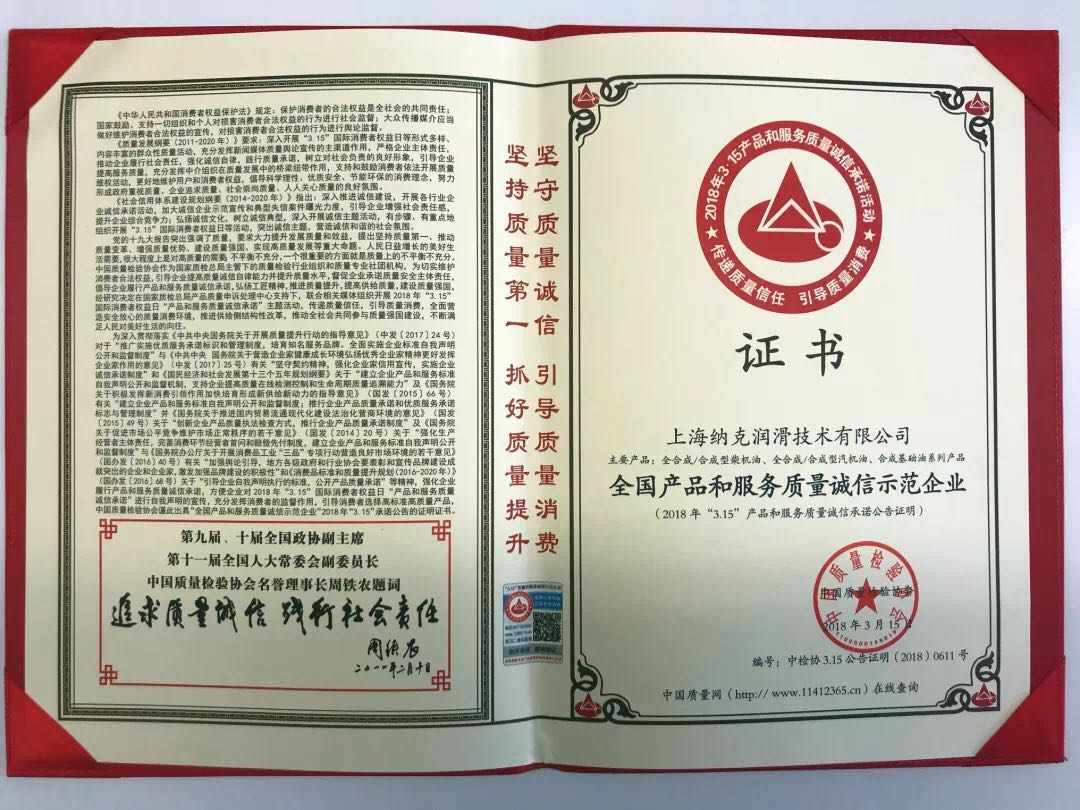作為今年被中國質量檢驗協(xié)會授予“3.15全國產(chǎn)品和服務質量誠信示范企業(yè)”的上海納克,在此向每一位經(jīng)銷商伙伴及廣大消費者鄭重承諾:
